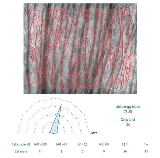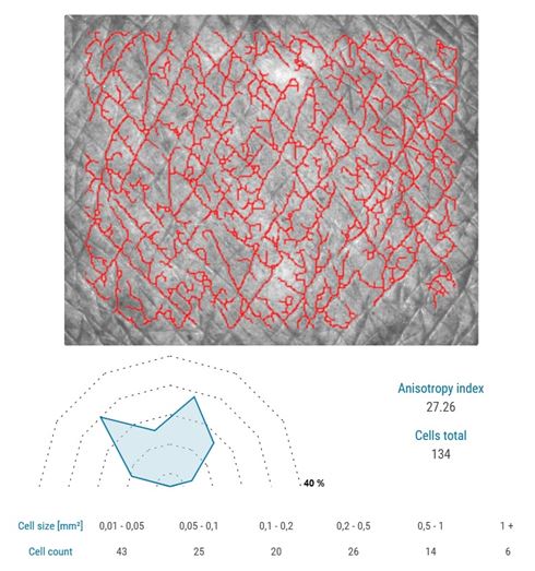 - Ageing parameters as anisotropy (directionality of the lines) and cell size (polygons between the visible lines) are at your disposal.