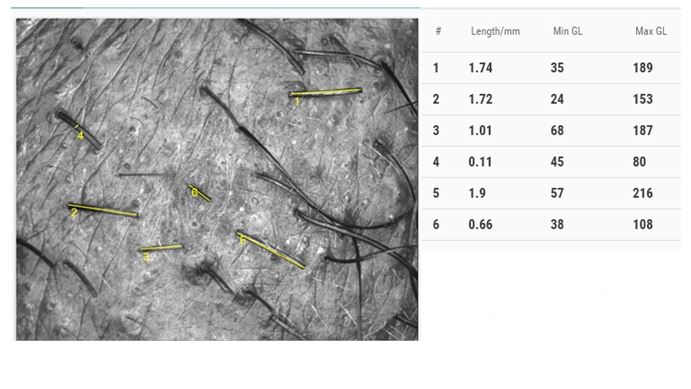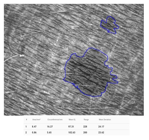 - Draw lines and free-hand objects in the picture. They can be measured accurately (e.g. length of hair after shaving, Hair thickness, pigmented spots and lesions, etc.).